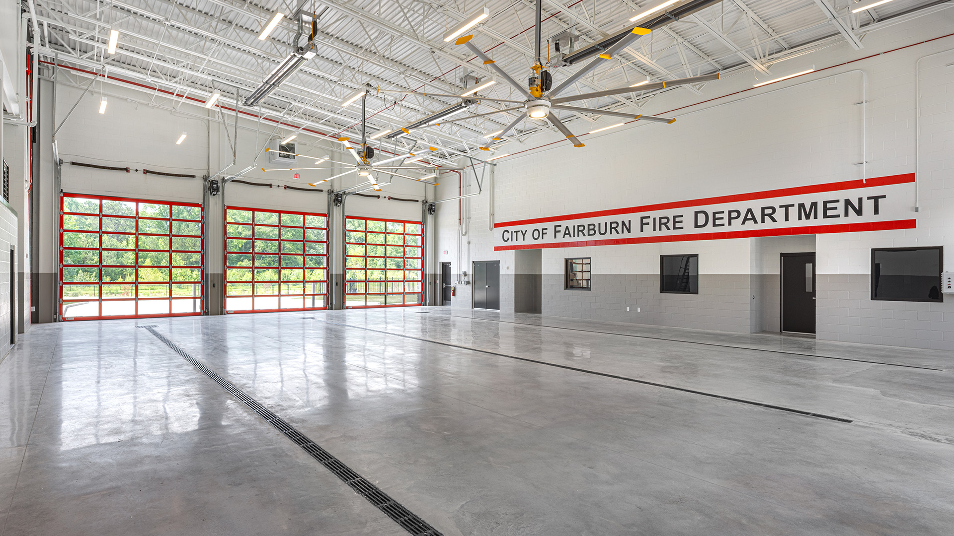 Inside, the facility includes three drive-through apparatus bays, a spacious day room, a fully equipped kitchen, comfortable bunk rooms, administrative offices, and a versatile community/conference room for public gatherings and departmental meetings. Well received by City leadership and residents alike, Fire Station #23 stands as a proud symbol of progress, resilience, and investment in Fairburn’s future emergency response capabilities.