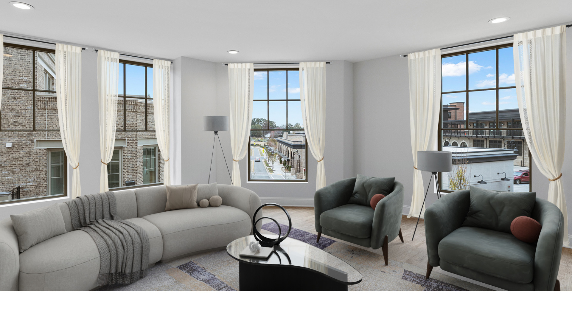 A lively atmosphere surrounding exclusive multi-story residences contributes to Crabapple Market’s unique community. The floorplans—2 and 3-bedroom residencies ranging from 3,540 to 4,900 square feet—define upscale living with luxurious finishes. The private garage and rooftop terrace accentuate modernity within urban living. POH+W Architects designed the residential apartments with a distinct, dramatic identity while complementing the dynamic energy of Crabapple Market itself.
