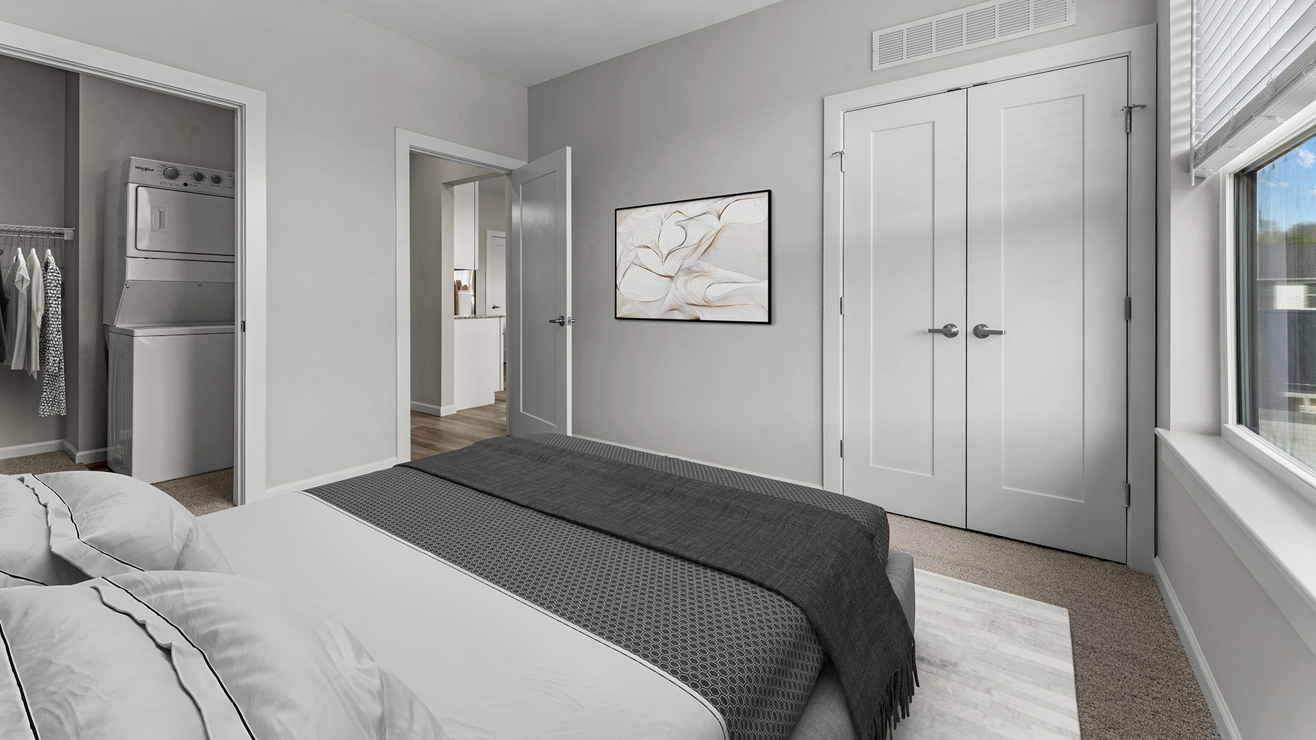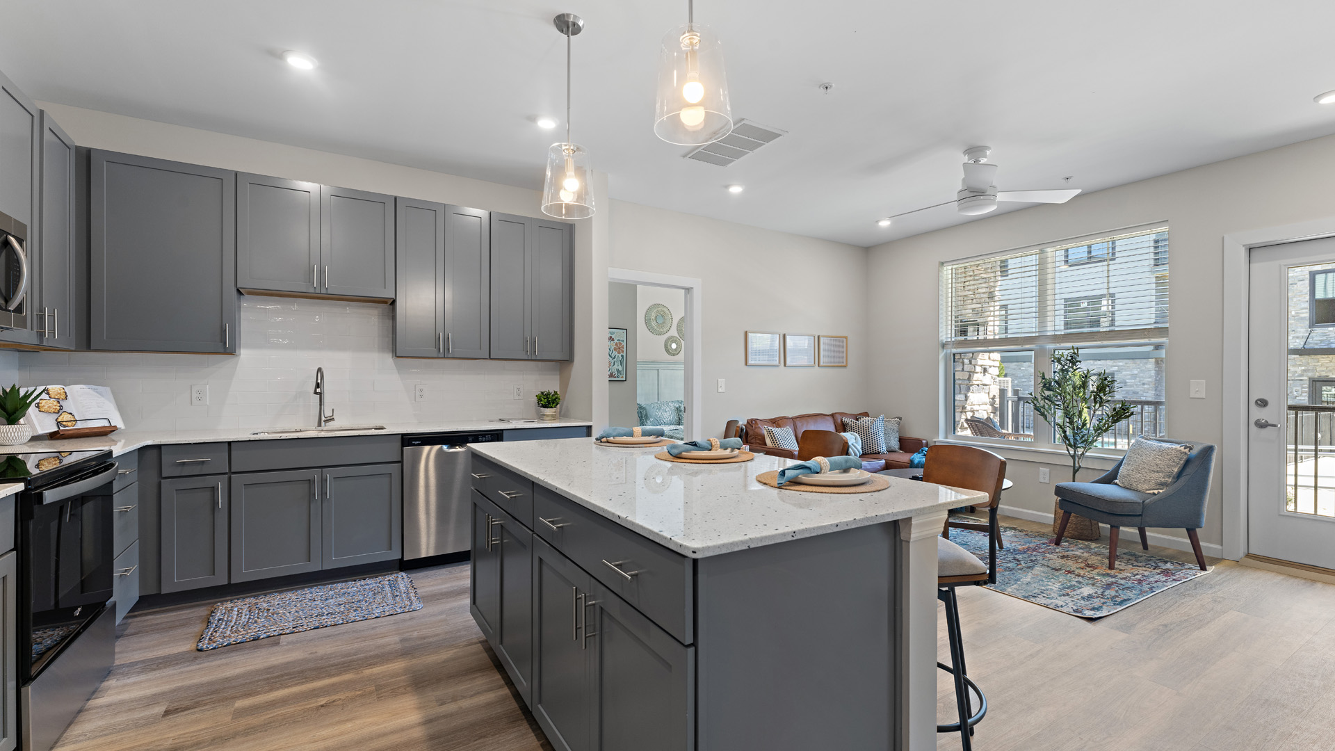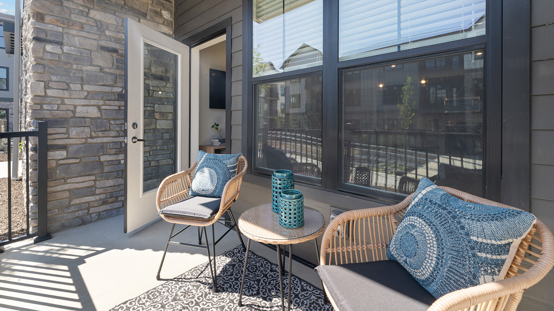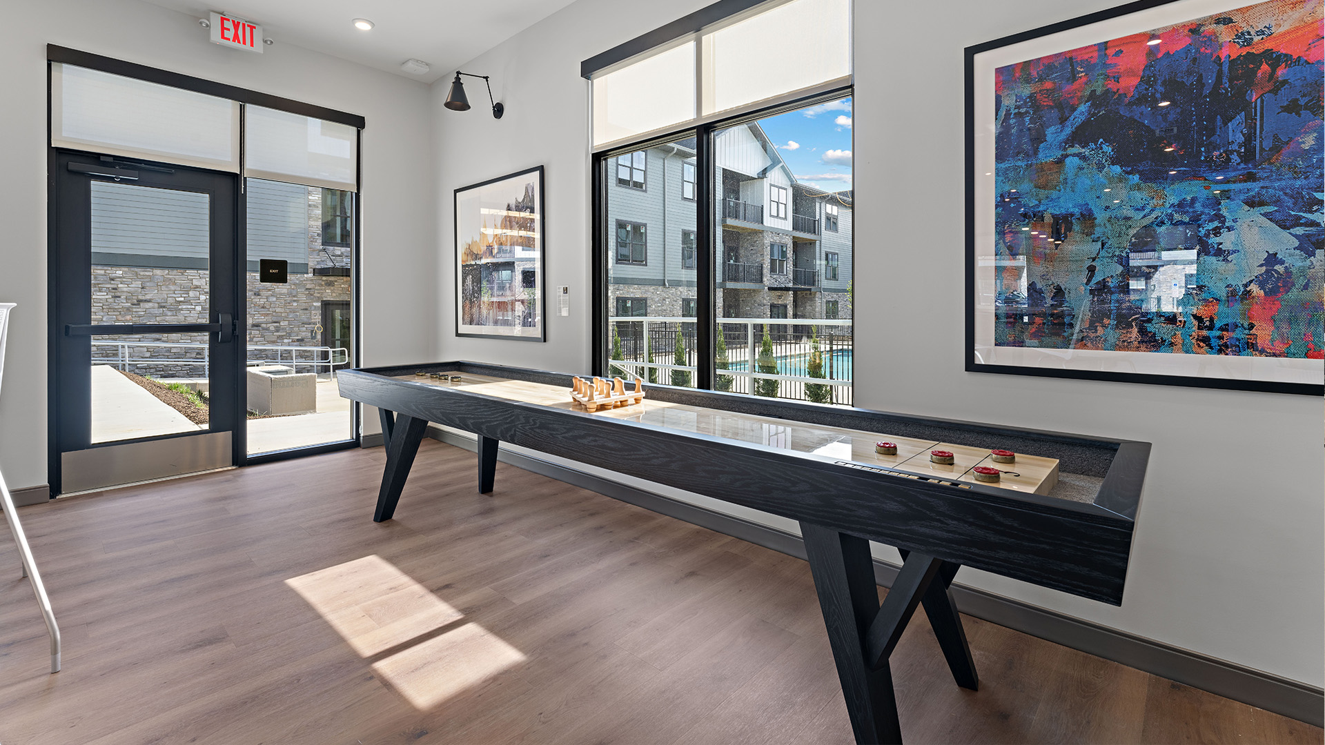 Community amenities were thoughtfully designed and include a spacious lounge with bar area, lounge seating for conversation, parties and game watching, private meeting room, a large fitness center and a must-have wash spa for pets. The community space is adjacent to the swimming pool, bar, and an outdoor fire pit with a pickleball court nearby.